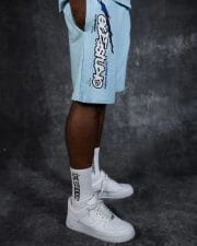 Bleiben Sie cool und bequem mit den Ere Studios Midnight Trackie Shorts in erfrischendem Himmelblau. Diese stylischen Shorts zeichnen sich durch einen auffälligen Grafikdruck an der Seite des linken Beins aus. Der Schriftzug „ERE STUDIO“ in dynamischer Schrift mit zusätzlichem Text verleiht Ihrem lässigen Look eine unverwechselbare Note. Die entspannte Passform bietet atmungsaktiven Komfort – perfekt für wärmeres Wetter, leichte Aktivitäten oder einfach zum Entspannen im modernen Streetwear-Stil.