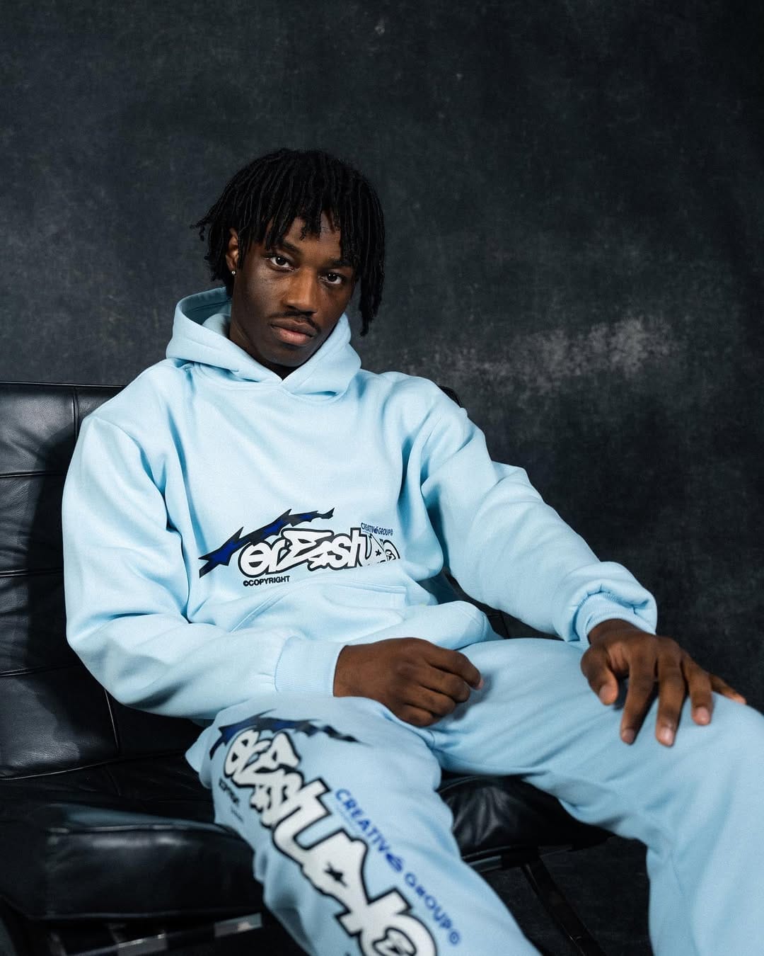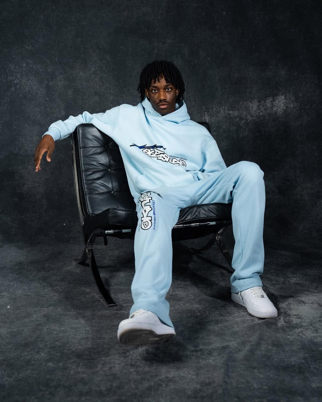 Der Ere Studios Midnight Trackie Trainingsanzug in Himmelblau ist ein stylischer und bequemer Trainingsanzug für alle, die auffallen wollen. Das hellblaue Set aus weichem, atmungsaktivem Stoff besticht durch auffällige grafische Details an Ärmeln und Hose. Der Kapuzenpullover mit Reißverschluss und die Jogginghose mit lockerer Passform sorgen für höchsten Tragekomfort und einen modischen Look.