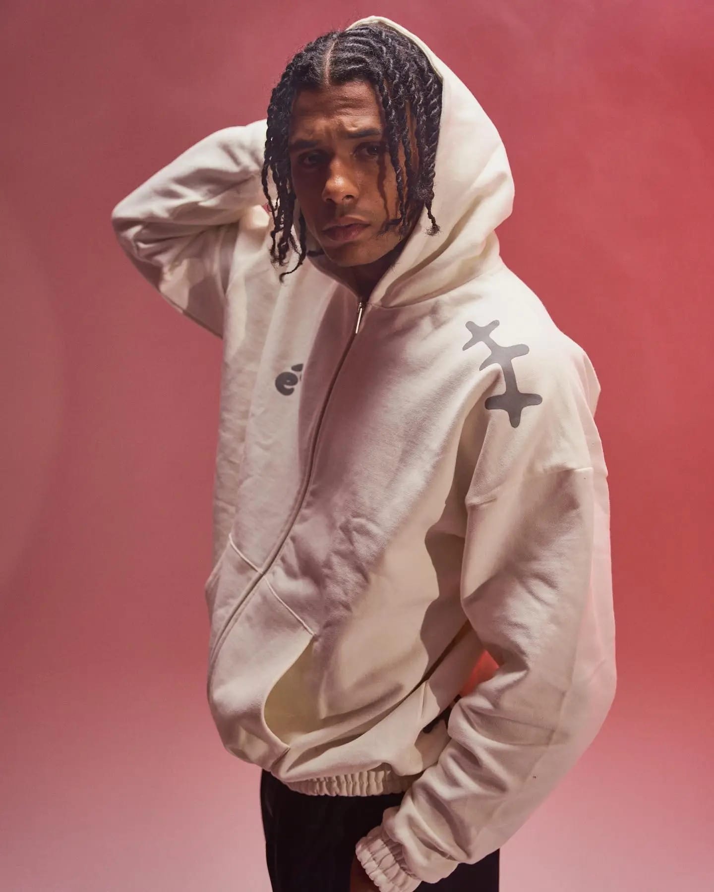 Veredeln Sie Ihren lässigen Stil mit dem Ere Studios Zipper Hoodie in strahlendem Weiß. Dieser bequeme und vielseitige Hoodie verfügt über einen durchgehenden Reißverschluss vorne, eine kuschelige Kapuze sowie gerippte Bündchen und Saum für eine perfekte Passform. Markante graue Nähte an der Schulter und ein dezentes „ë“-Logo auf der Brust verleihen ihm einen einzigartigen, trendigen Touch und verkörpern die charakteristische Ästhetik von Ere Studios. Ideal für den Alltag, zum Kombinieren oder als dezentes Statement.